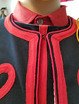 The tunics worn by the 14th Brooklyn were a beautiful combination of red and dark blue adorned with small gold buttons running up and the center of the chest. The tunic was made with a red false vest with 14 buttons closing the vest. Over the false vest was a dark blue shell with 14 buttons on either side of the shell. Some later models of the jacket did away with the false vest and actually sewed the vest into the shell making it a complete jacket. On the jacket were chevrons on the lower arms symbolizing light infantry. Earlier recruits also were issued "Shoulder-Knots" composed of thick red fabric that were attached with thread on one end and a gold button on the other.